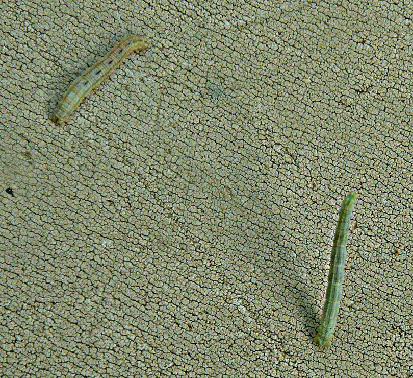 De nombreuses petites chenilles L= 10 mm max et 1 mm diamètre ,couleur vert-clair à blanche ,sont apparues sur la marjolaine et non sur les plantes proches .Jodis lactearia ? ???