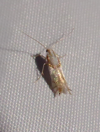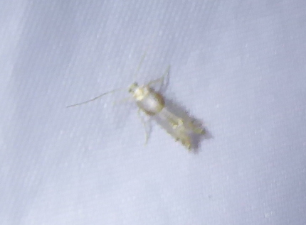 Un autre minuscule Phyllonorycter qui courrait sans arrêter sur le drap. Il est peut être la même espèce que P. sp. cf. roboris.