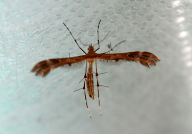 Voici un spécimen de la taille de Emmelina monodactyla mais de couleur brune, pattes de couleur non uniforme faisant des segments entrecoupés de blanc, extrémités des pattes segmentées.