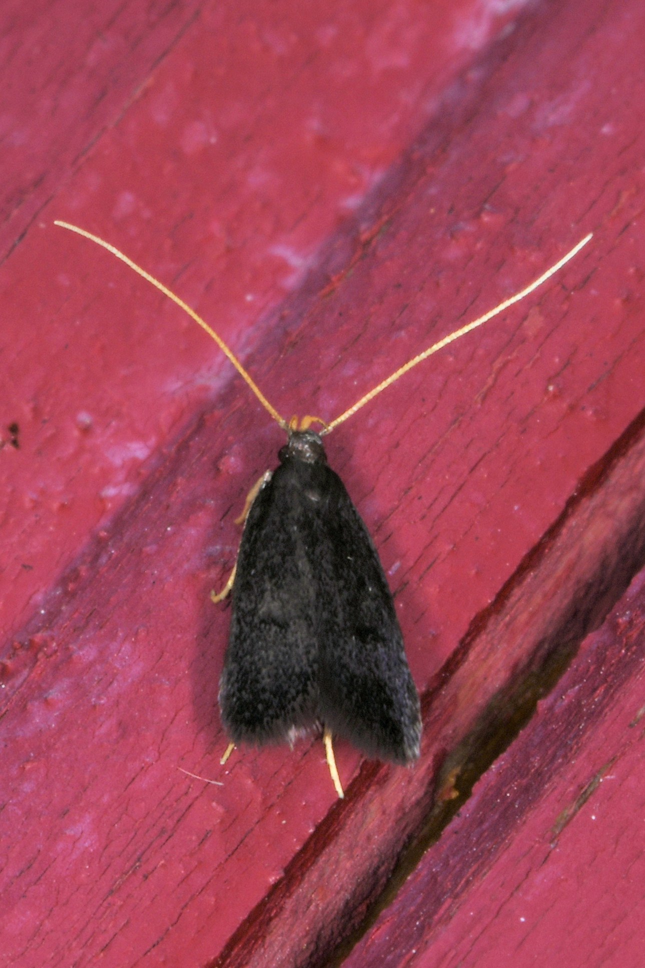 Je voyais plutôt Lecithocera nigrana (aspect très sombre et photos 6,7 et 9 de lepiforum pour le décor visible), mais l'absence de zones claires à la base des antennes me fait douter (on ne les voit pas toujours sur les photos de lepiforum) donc tu dois avoir raison.