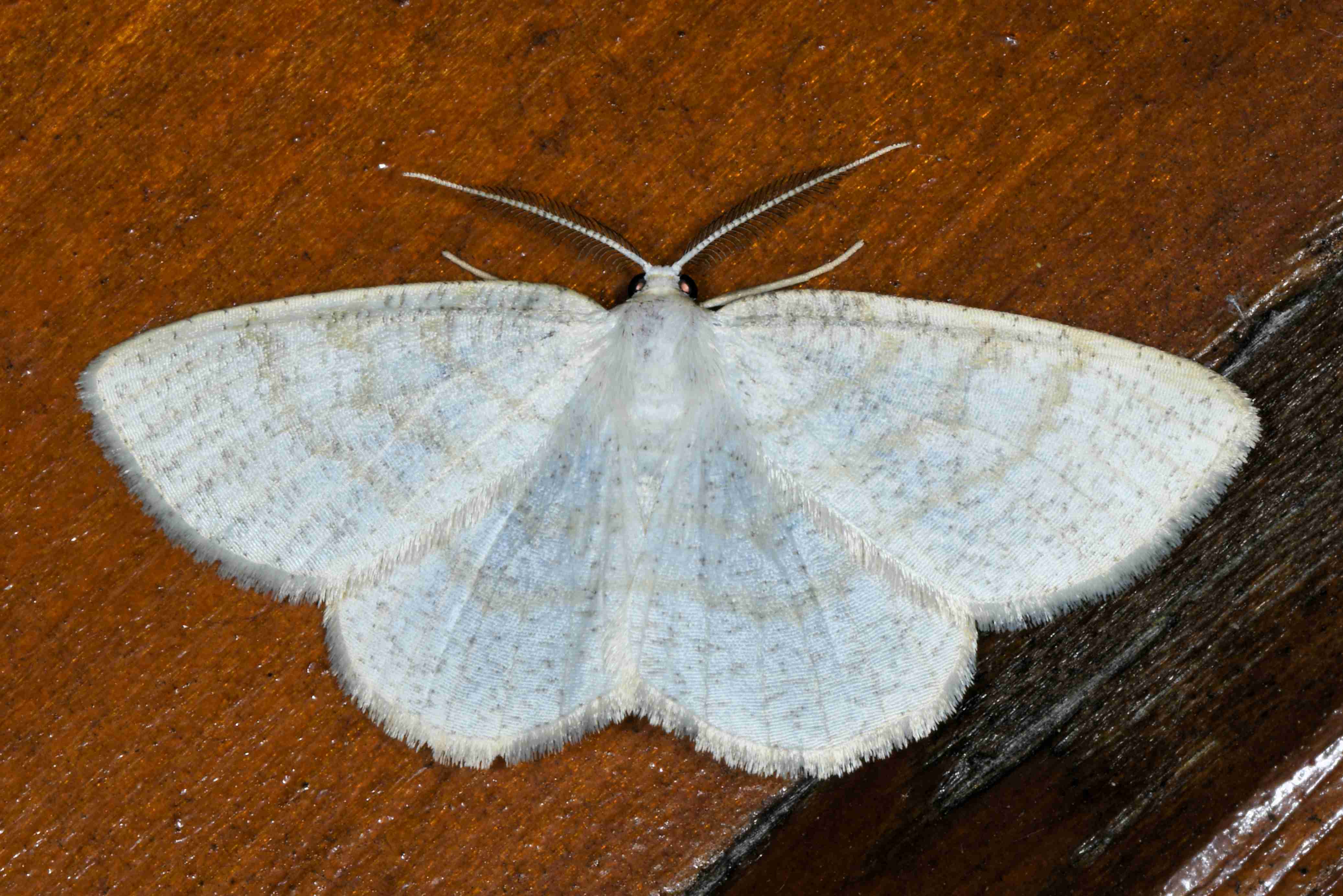 Je rencontre, assez régulièrement, pusaria. Je croyais que c'était elle, mais la couleur jaunâtre et la sinuosité des lignes m'a fait regarder de plus près. Cabera exanthemata me semble possible, notamment la troisième ligne de l'antérieure qui est plus courbée.