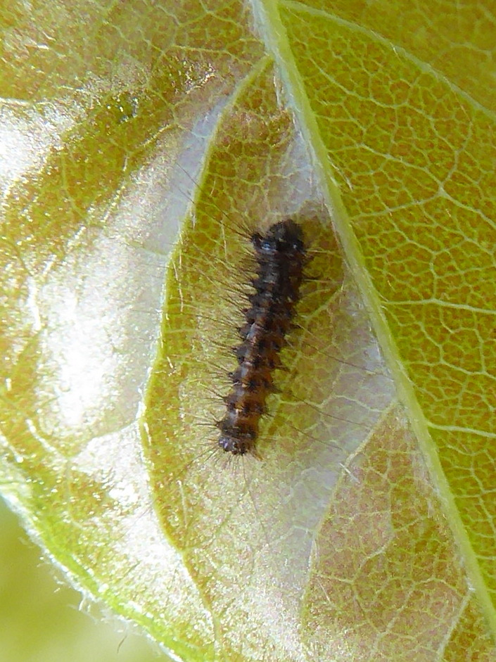 Je crois ces sont d'Orgyia antiqua, parce que je trouvais des chenilles de cette espèce quand ces sont bien plus grandes pendant des année dernières (depuis 2014). L'année dernière un imago m est venu à ma lampe le 17 09.