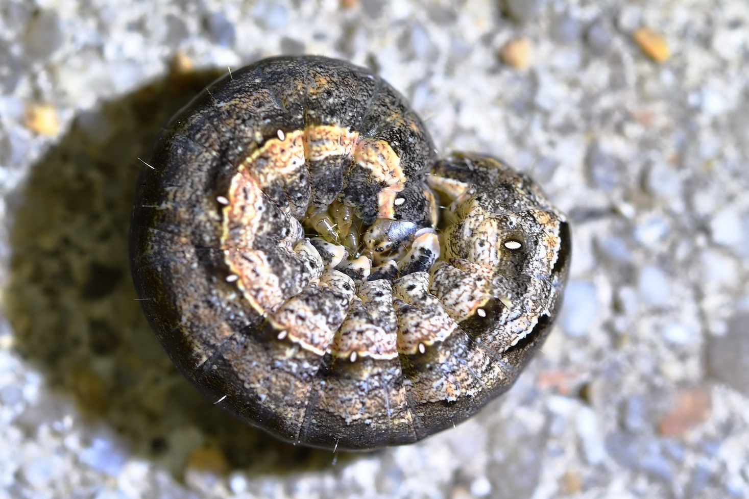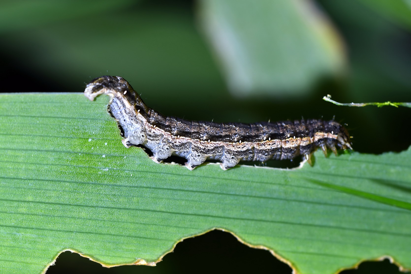 Photos faites chez moi hier soir vers minuit (Thésée - 41); attaque en règle des feuilles d'iris par 5 chenilles identiques.