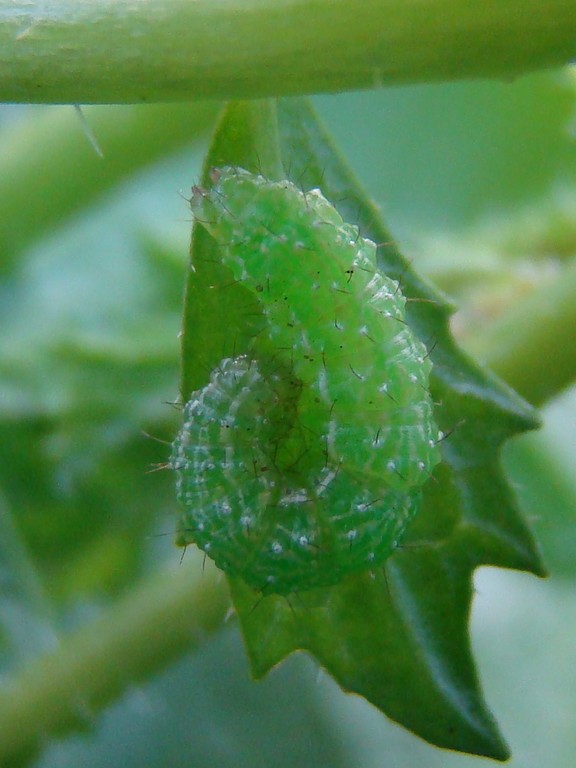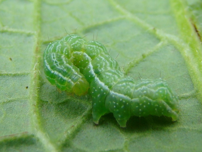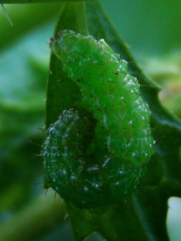 j'ai pris en photo deux chenilles à des périodes différentes, mais comme elles se ressemblent et que pour toutes les deux, je pense à Diachrysia chrysitis, je vous mets les deux photos mais sur deux posts (si jamais il faudra les séparer).