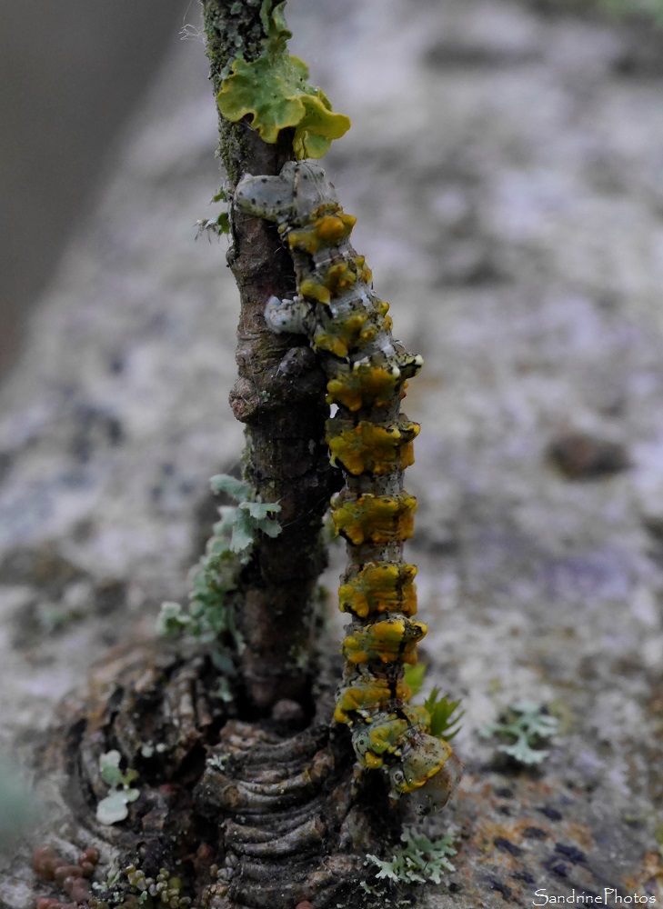Bonjour, j'ai photographié cette chenille cette semaine sur une branche de chêne, à Bouresse dans le sud de la Vienne, et j'aimerais avoir la confirmation qu'il s'agit bien d'une chenille de Boarmie des lichens.