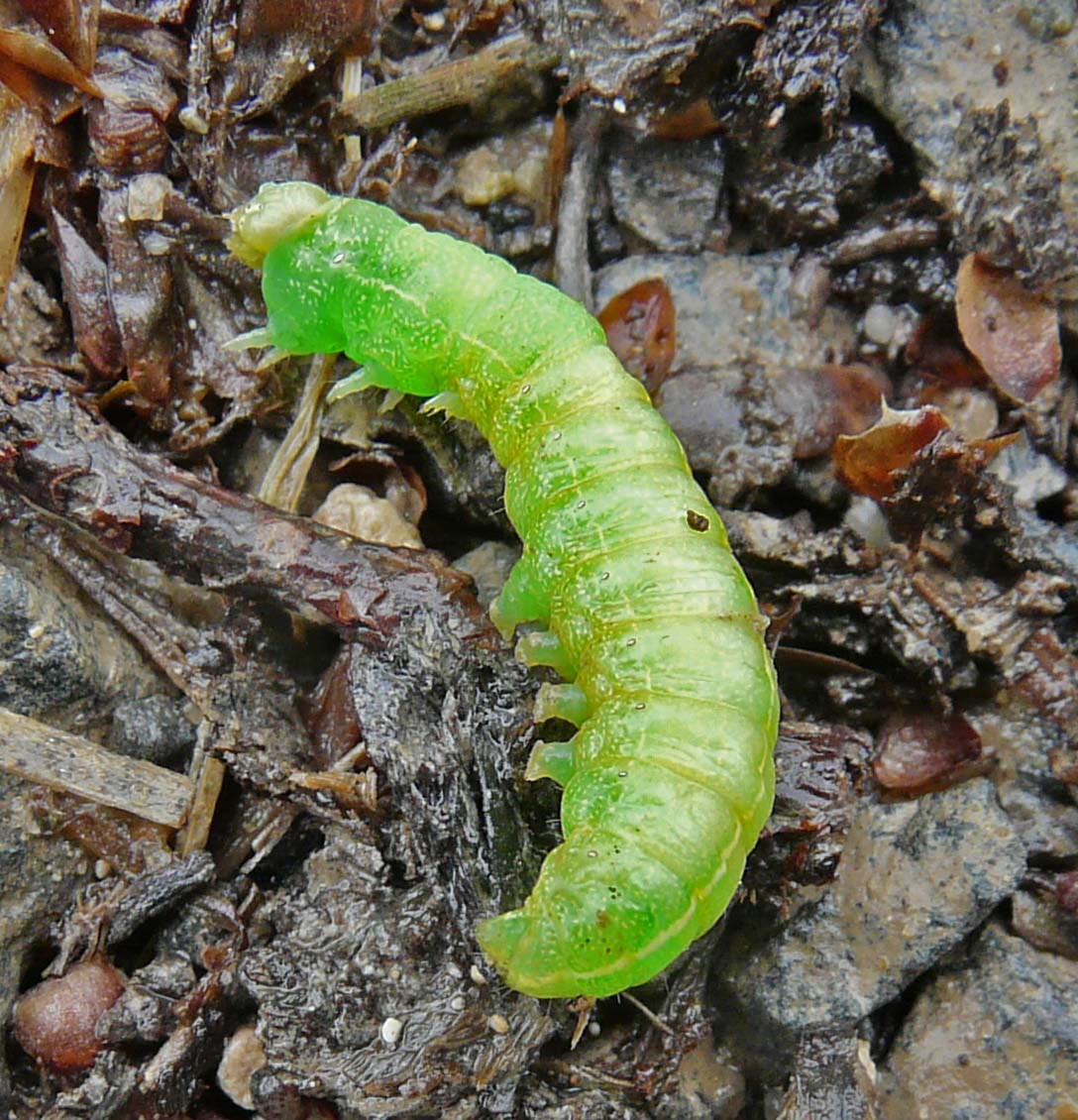 Pas évident sinon, Noctuidae, mais après ? J'ai pensé à Orthosia incerta, mais c'est trop tôt pour une chenille à un stade aussi avancé. P. meticulosa est peut-être possible, mais dans tous les cas, la chenille est soit mal en point, soit en pré-nymphose, et donc n'a pas son apparence normale, ce qui ne facilite pas la tâche.
