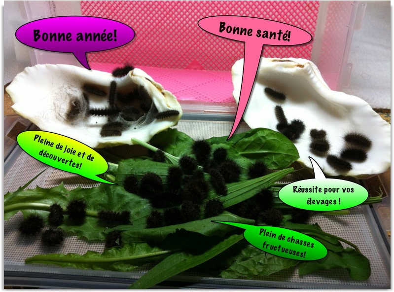 Bonjour. Je vous souhaite à toutes et à tous, une excellente année 2012. Qu'elle soit riche en découvertes papillonesques et en élevages ainsi qu'en rencontres entre forumeurs.