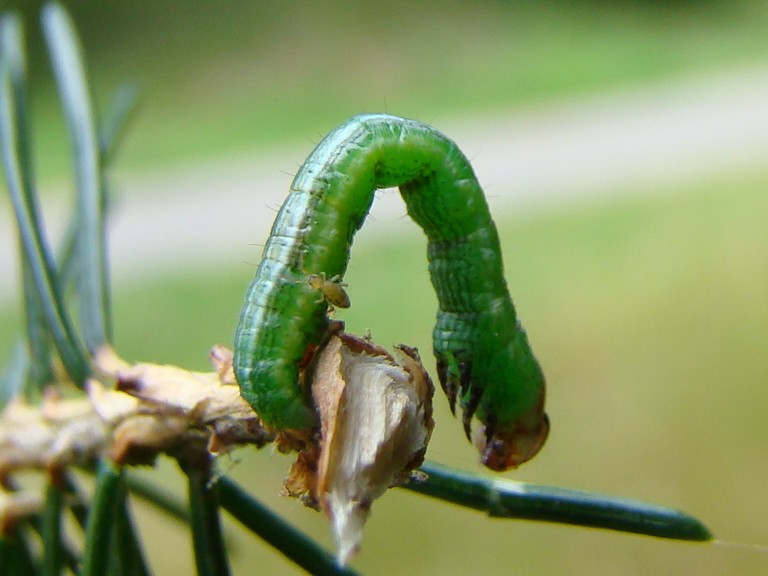 une petite bete démarre sur la branche pour finir............. sur le dos de la chenille...