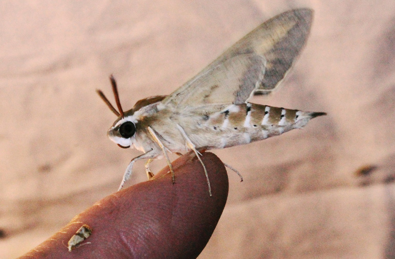 Agrius convolvuli ( que je n'avais pas encore vu.. tout vient à point à qui sait attendre - devant son drap