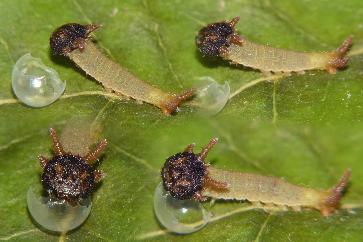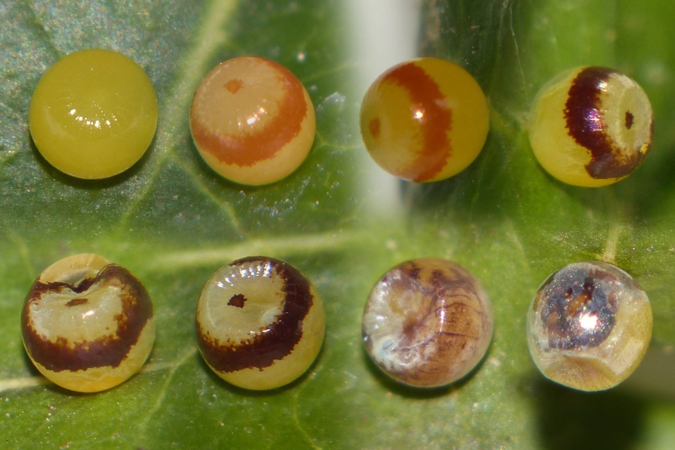 Une deuxième chenille est née ce matin (celle dont on devine la tête dans le dernier œuf).