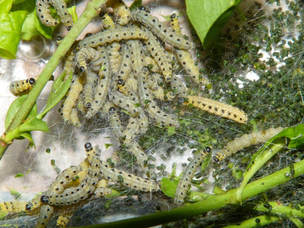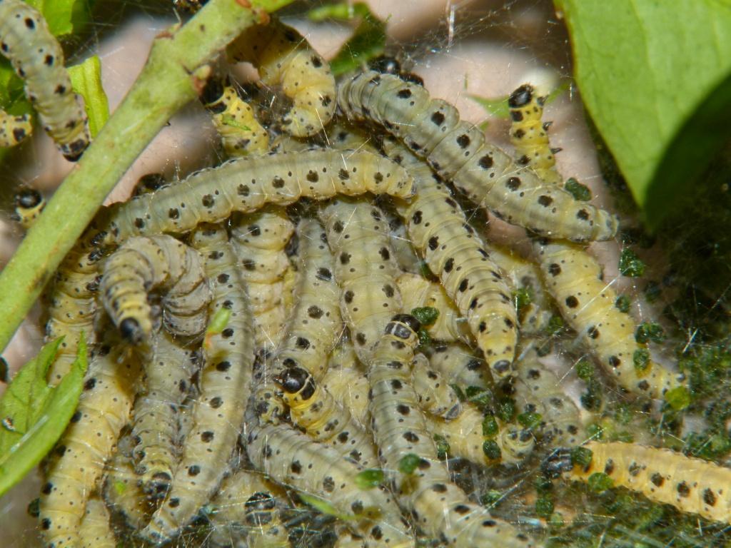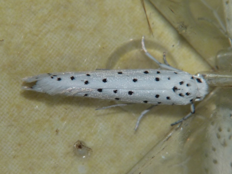 Par contre, ce qui me semble bizarre, elles présentent une tache noire sur le dernier segment qui me semble typique de Yponomeuta malinellus. Ce qui ne colle pas eavec la plante hôte (fusain). :?