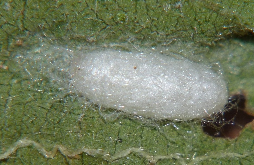 Je pensais qu'il s'agissait d'une jeune chenille d'Emmelina monodactyla, mais elle a fait son cocon, qui mesure 4 mm qui ne ressemble pas au cocon de cette espèce !