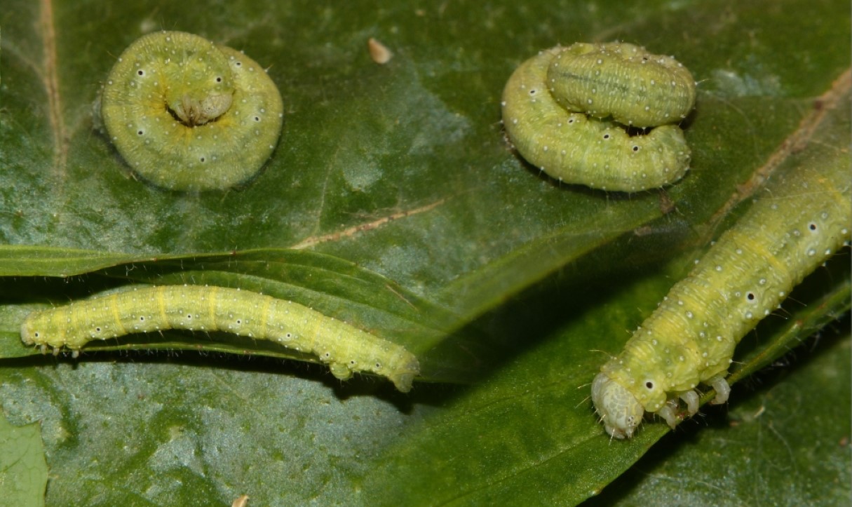 Capturée aujourd'hui chez moi, à Lunel-Viel (34), cette chenille de Larentia clavaria mesure environ 25 mm.