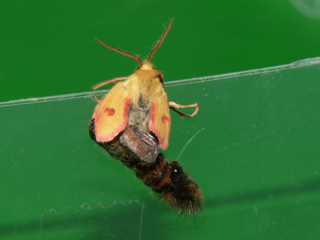 Première émergence aujourd'hui, alors que j'ai encore des chenilles de la même ponte en élevage, dont une qui n'est pas prête de se chrysalider... (génération partielle ?)
