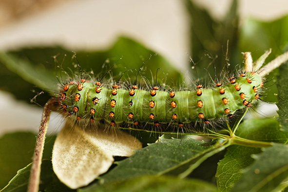 Trouvée aujourd'hui sur cotoneaster. Saturnia pavonia/pavoniella à comparer à celle de l'an dernier: verrues orange celle-ci.Che Saturnai pavonia-0990.jpg