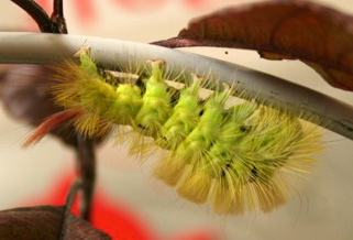 Qqs rapides recherches sur internet m'ont appris que cette petite beauté punk se nomme Calliteara pudibunda (corrigez-moi si je me suis trompée) . Si c'est utile pour une éventuelle carte de répartition, elle a donc été trouvée à Bruxelles le 16/09/2012, dans un square en centre-ville, sur un prunus dont elle a été délogée par le volant de badminton de ma fille ...
