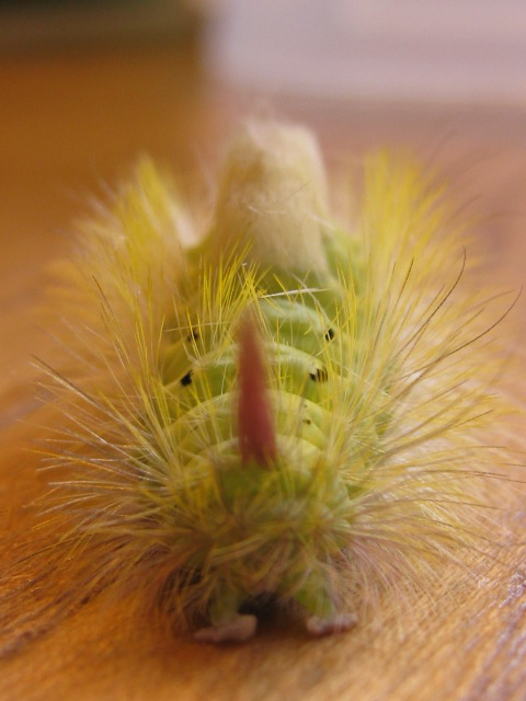 De toute façon, il semble que la nymphose ne soit pas pour tout de suite : j'y ai jeté un coup d'oeil ce matin avant de partir au boulot, et elle venait de se mettre à manger, pour la première fois depuis dimanche soir...