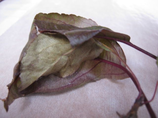 J'ai d'abord pensé que les feuilles de prunus ne lui plaisaient pas (c'était bien sa plante-hôte mais les feuilles sont déjà plutôt sèches et fanées).