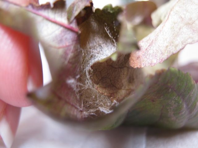 Cela fait maintenant près d'une semaine que notre petite pensionnaire s'est emberlificotée entre trois feuilles de prunus et qu'elle n'en bouge plus. En y regardant de plus près, elle a sécrété une sorte de barbe-à-papa qui maintient les trois feuilles collées ensemble. J'imagine qu'il s'agit de son cocon ... Dommage, pour notre première chenille à cocon aérien, on ne voit rien du tout ! En tout cas, elle n'a pas volé son nom de "pudibonde" (même s'il est plutôt dû à sa manie de se rouler en boule dès qu'on la dérange, si j'ai bien lu).