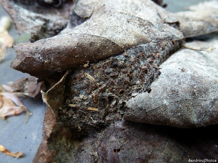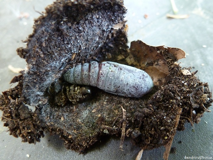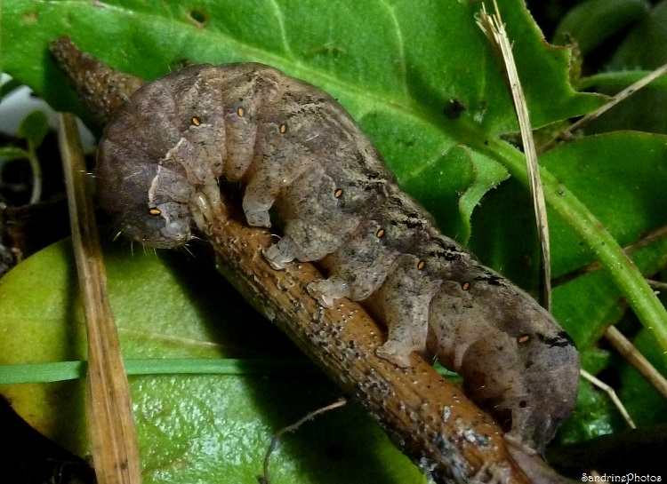Trouvé 2 chenilles de Mormo maura sous des feuilles mortes de vigne vierge. Quelques feuilles fraîches ont d'ailleurs été grignotées. Les chenilles devaient être à terme car elles se sont bien vite mises en cocon : une, entre deux feuilles mortes et l'autre dans la terre...