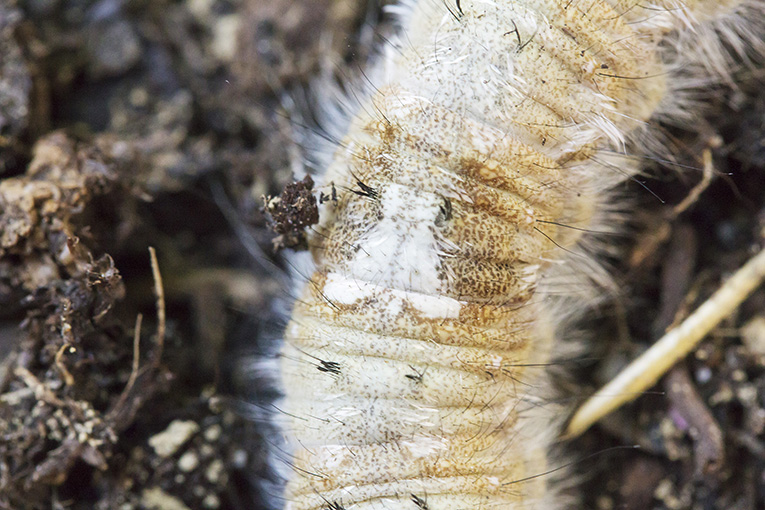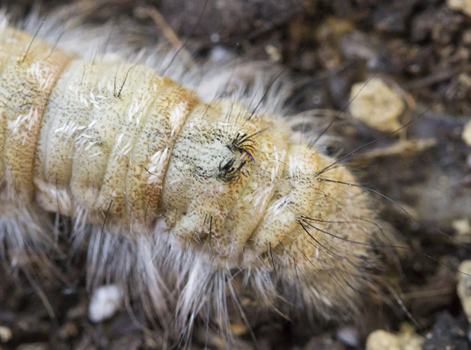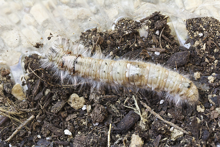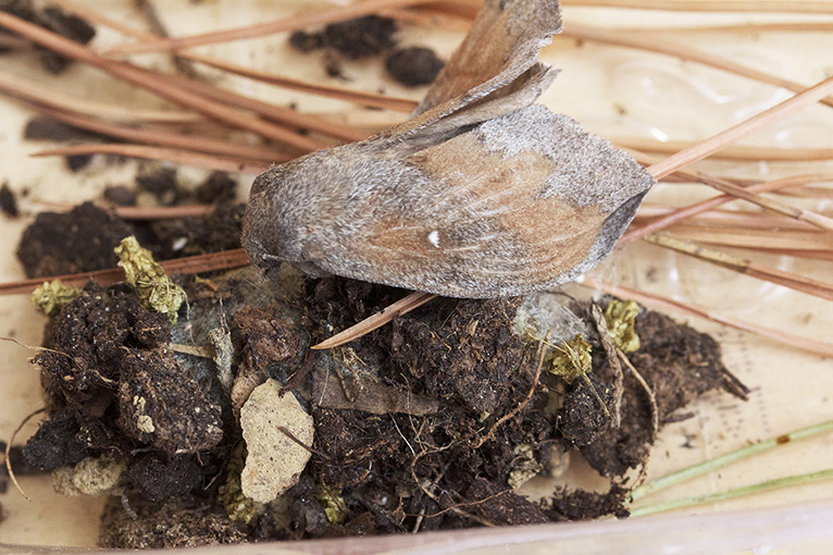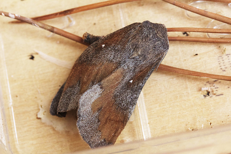Je propose Dendrolimus pini. Longueur = 67 mm. J'ai observé son imago à la lampe.