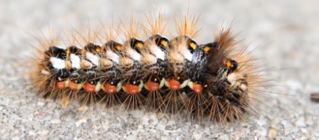 Deux chenilles de Viminia rumicis, la plus petite sur fraisier des bois, et la plus grande sur Epilobe (peut être)