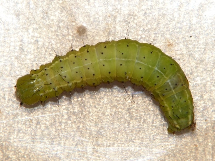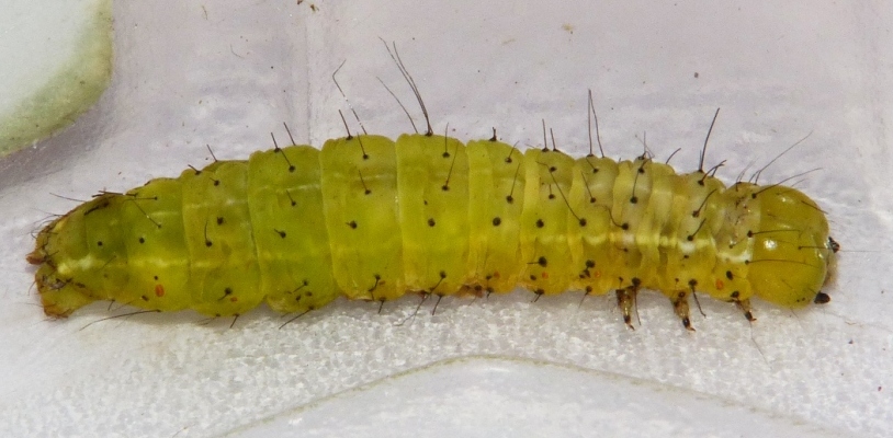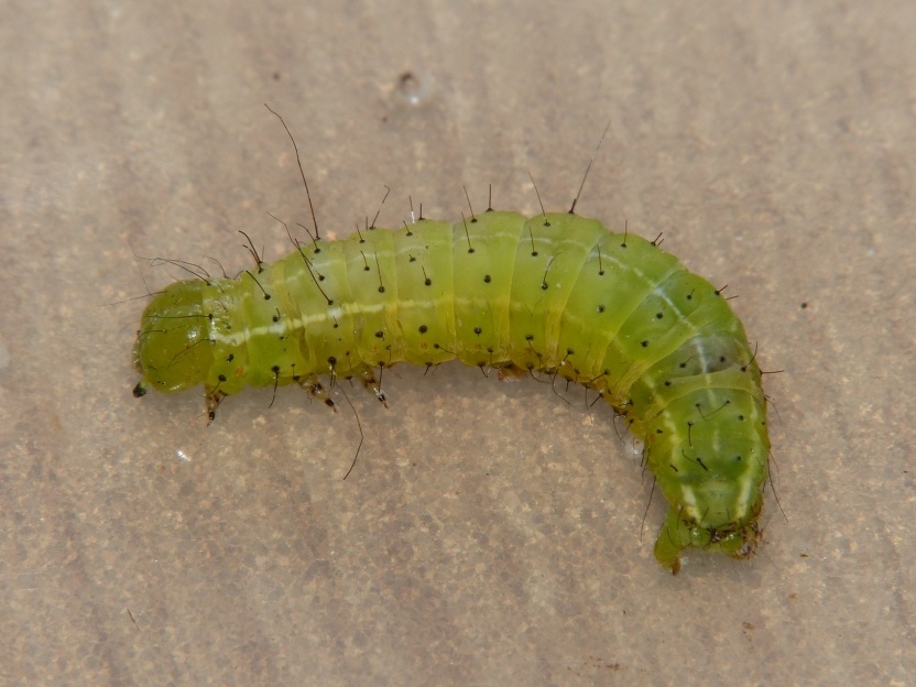 Je lui ai proposé plusieurs espèces de plantes basses, sans succès. J'espère qu'elle est prête pour la nymphose et que j'obtiendrai l'imago : c'est peut-être une bestiole sudiste...