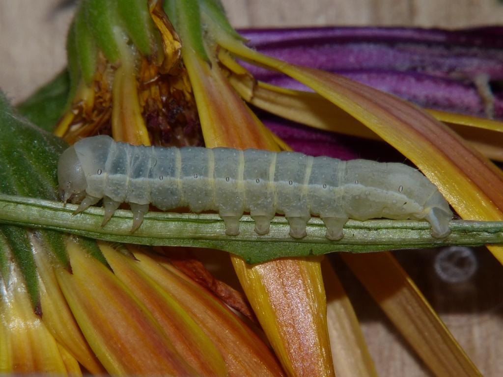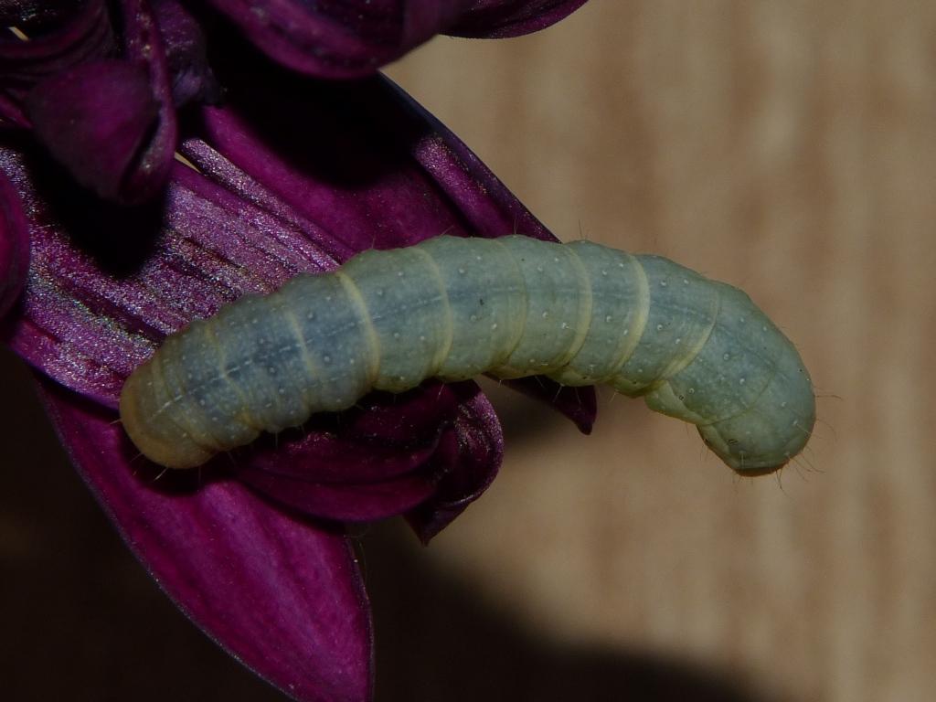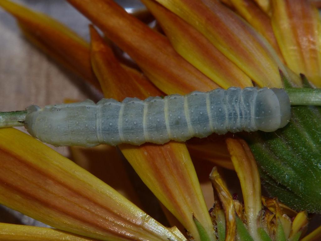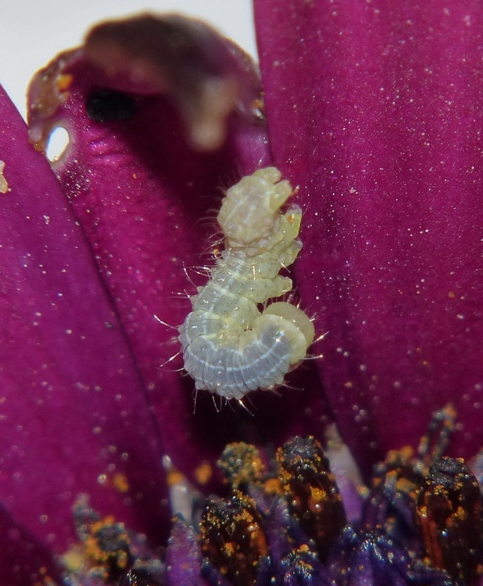Chenille de 3 mm capturée le 12/03/2014 sur Osteospermum. Je pense que c'est ce genre, mais pour l'espèce... les paris sont ouverts ! (si j'arrive à obtenir l'imago...)