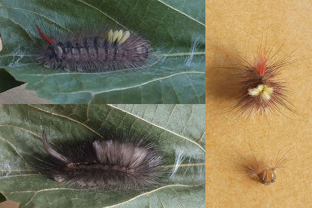 Voici la surprise trouvée sur les feuilles. J'ai deux Pudibondes en bocal avec une feuille de Tilleul. Elle sont bon appétit, c'est partit.
