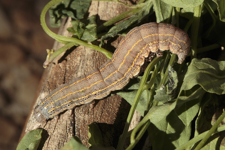 Circulant sur un mur de façade. Plante hôte non repérée à proximité. L= 50 mm environ. Le 20 septembre 2015 dans le Gard. Je l'ai mise sur liseron.