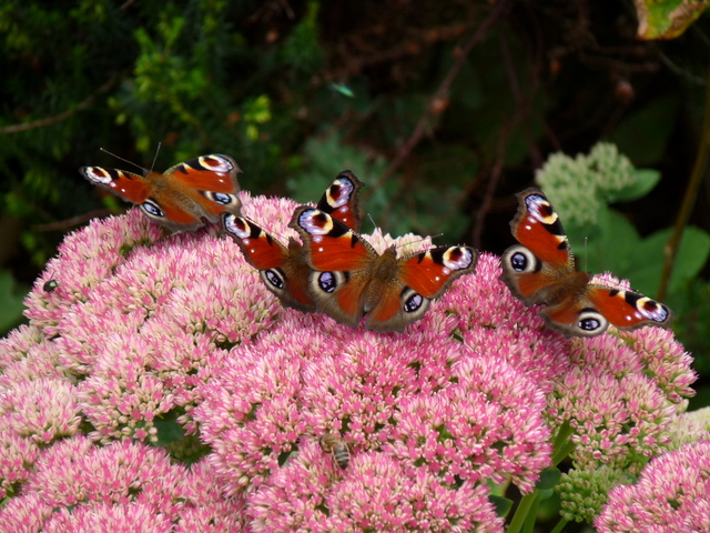 Un vrai plaisir pour les yeux que tous ces paons du jour qui butinent le sédum en ces jours ensoleillés de septembre que je voulais partager même si c'est un papillon commun sans doute mais je ne me lasse pas de l'immortaliser car j'en ai rarement vu autant que cette année au jardin depuis début septembre