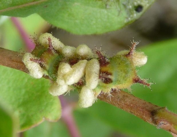 J'ai mis une chenille de papilio machaon en élevage, belle bien en santé. Le lendemain elle était molle. Quand je l'ai saisie entre les doigts, un ver (asticot) est sorti de son corps par un petit trou que je ne n'avais pas vu.