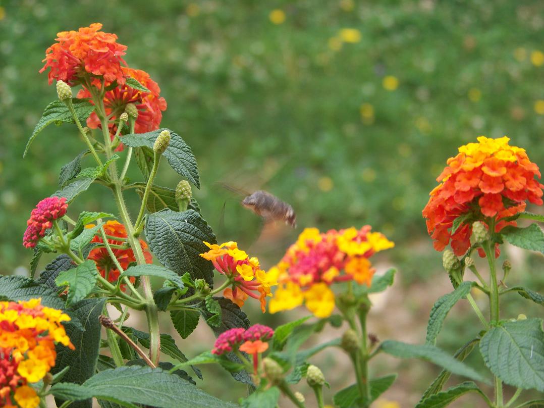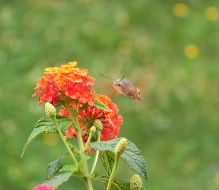 Un joli moro-sphinx pris en photo ( du mois j'ai essayé) en ouvrant mes volets ce matin, butinant mes lantanas.