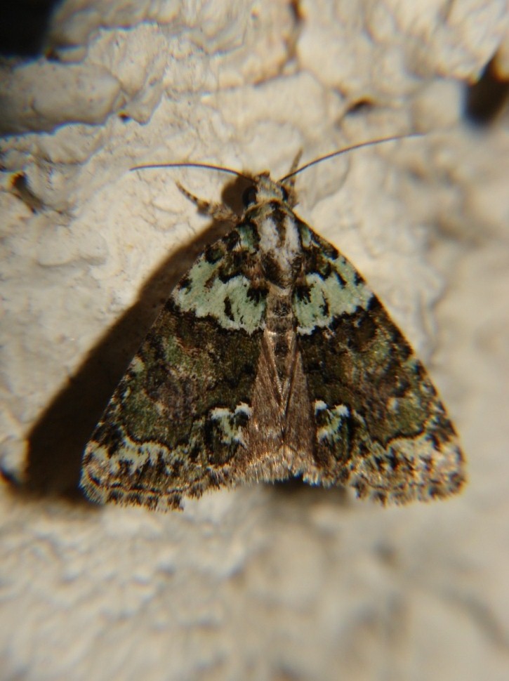 Ces deux noctuelles ont été attirées la nuit dernière à la lumière. C'est la même espèce (Cryphia algae ou Bryophile vert-mousse), mais avec des couleurs très différentes...