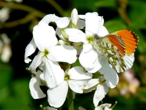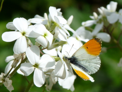 Un vrai plaisir pour moi d'avoir réussi à immortaliser ce papillon Aurore mâle que j'apercevais volant dans mon jardin, mais que je n'avais jamais vu se poser pour butiner. En étant un peu observatrice, je me suis aperçue qu'il affectionnait particulièrement la julienne des dames et du coup je l'ai mitraillé et je voulais partager ce bonheur avec vous