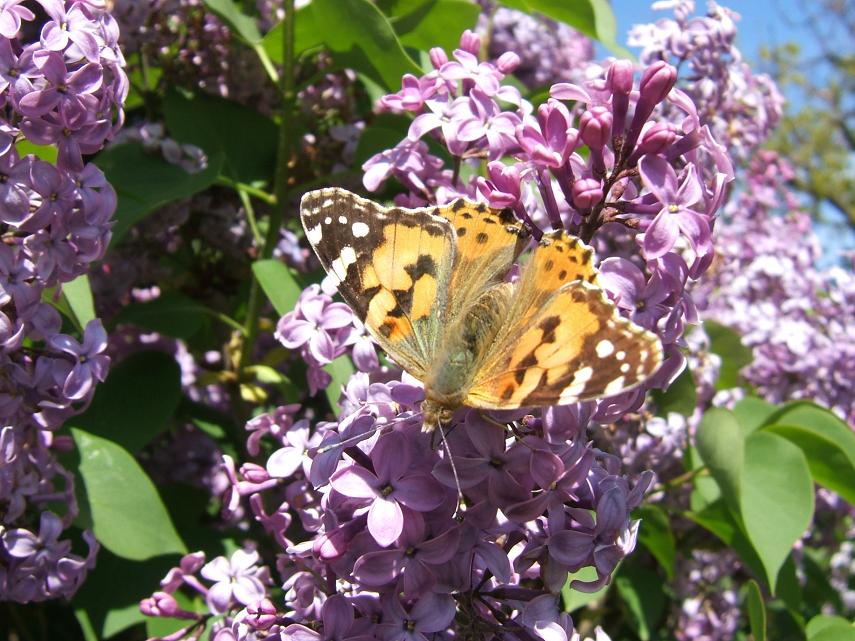 Ca doit être une bonne année pour l'espèce... J'ai compté le weekend dernier treize belle-dames dans le lilas. J'espère qu'il ne migrent pas tous au nord et que je trouverai bientôt quelque chenilles dans les chardons...