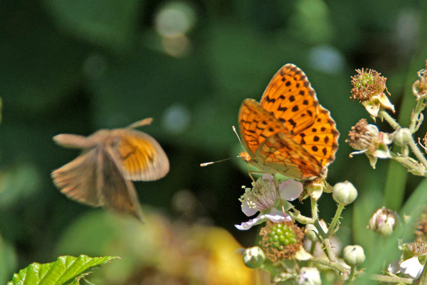 Pour celui de gauche, je propose un Myrtil. Celui de droite est un nacré, probablement celui de la ronce (Brenthis daphne).