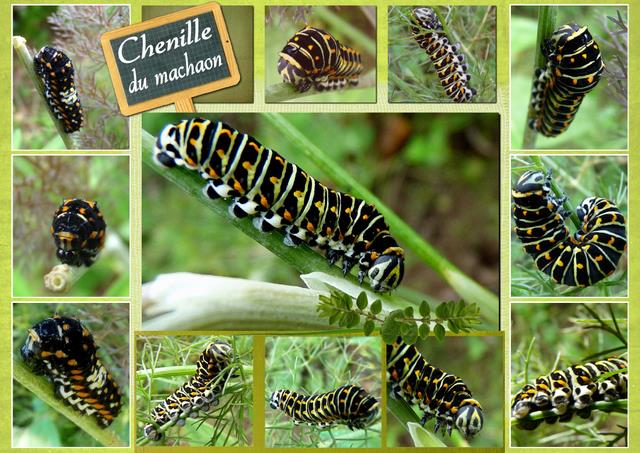 En ce moment dans mon jardin, j'ai le plaisir de pouvoir observer cette belle chenille de machaon sur le fenouil. Résistera t-elle aux frimas? Ai-je des chances de la voir se transformer en chrysalide puis en papillon. La couleur change au fil des jours; au départ quand je l'ai repérée, elle avait des taches blanches sur le milieu du dos. Combien de temps lui faut-il pour se transformer en chrysalide?