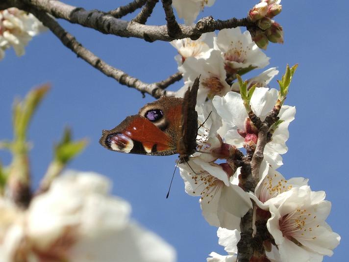 Je découvre cette rubrique, alors voici mon inachis io du jour, sur l'amandier en train de se nourrir goulument...