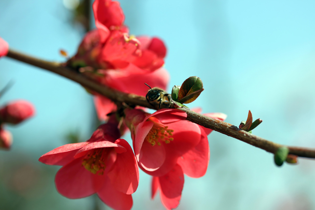 vu aussi butinant sur ces fleurs de cognassiers du Japon, un Moro Sphinx trop craintif pour laisser approcher un appareil photo. Vu aussi par deux fois Nymphalis polychloros avec le même résultat.