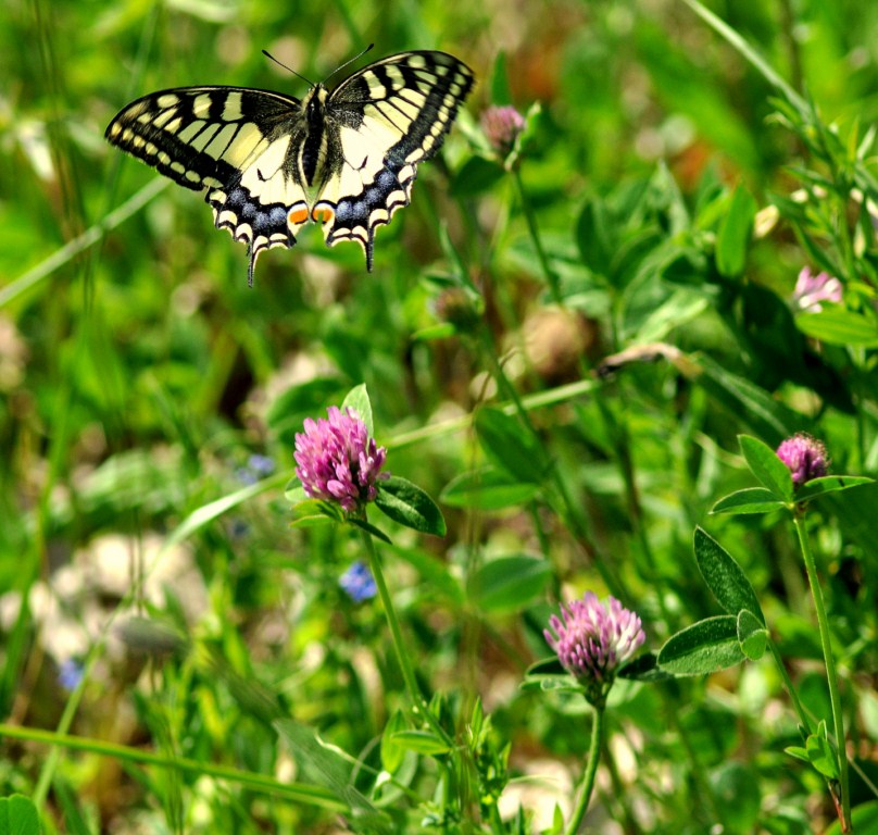 ici , ce machaon , m'avait pas causé trop de soucis , vigoureusement , il allait de fleures en fleures ,restant 10 secondes a chaque fois donc j'ai fait la mise au point sur une , et par chance ( dans ce type de cliché , la chance fait partit de90/100 ), et là il s'est posé sur celle çi , j'ai commencé a prendre en vue continue ( 6images secondes) et voilà le résultat