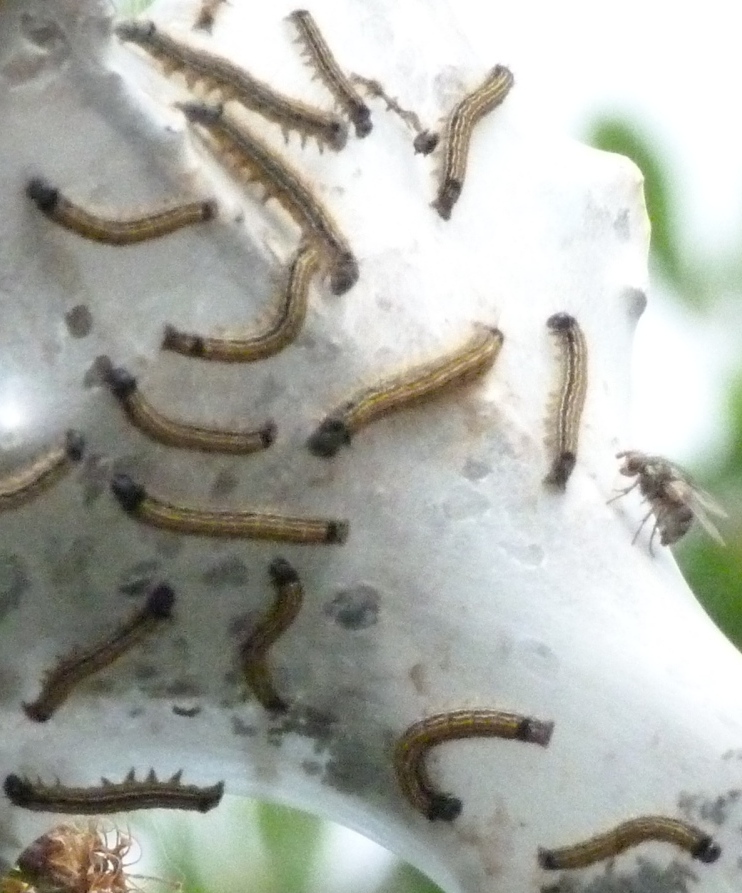 Voici des chenilles de neustria observées près de l'étang l'an dernier, en Brenne. Désolé pour la mauvaise qualité photo, elles étaient très loin...