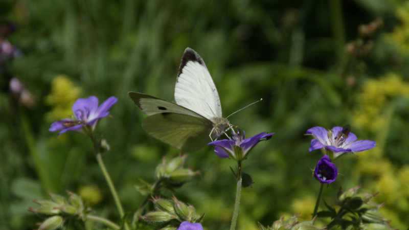 Elle est plutôt chou, comme ça, cette piéride... Sur celle de droite (qui est à gauche sur la photo), on voit en fait la tache sur le revers, il n'y en a pas sur l'avers... ;)