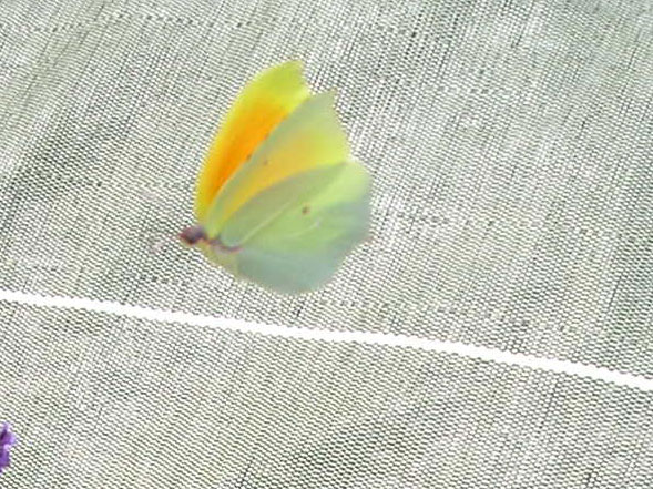 Au sud de Montélimar, à St Thomé (07) dans un grand jardin (terrain naturel bordé d'une haie sauvage et massifs de lavande) j'ai pu voir plusieurs papillons diurnes chaque jour comme celui-ci. Je n'ai pu prendre de photo correcte ailes ouvertes car ils se déplaçaient très vite de fleurs en fleurs pour butiner mais j'ai aperçu une teinte jaune orangé vif... Pour le dessous des ailes pas de problème je vous envoie une photo correcte. L'autre est un peu flou mais on voit la couleur.