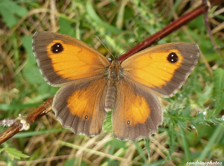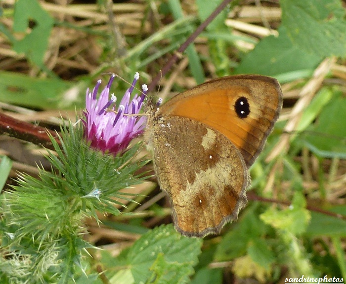 Voici un papillon rencontré sur un chemin en lisière de bois. Il a tout l'air d'un Pyronia Tithonus, femelle peut-être...