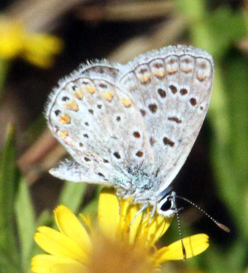 Voici d'autres clichés de papillons identiques pris plus haut en altitude (même Sierra en Andalousie). Là encore les taches noires sur le dessus des ailes postérieures sont bien visibles