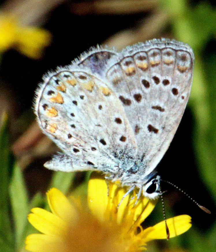 Dans le courant du mois d'octobre 2012 au pied de la Sierra de Almijara (Region de Màlaga,Andalousie) et de son parc, j'ai vu à plusieurs reprises ce Polyommatus qui m'intrigue de par son dessus avec des points plus ou moins noirs sur la frange.