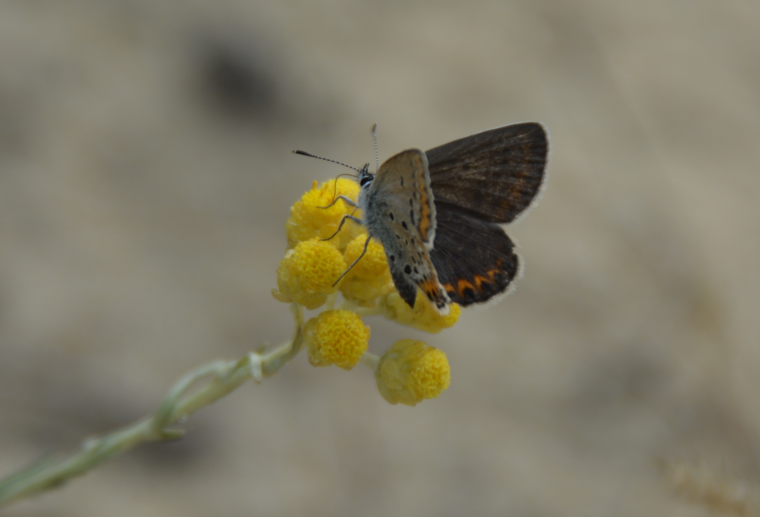 Sur le 2e cliché (femelle sur immortelle des sables), je crois noter des points noirs submarginaux au dessous des AP pupillés de bleu.