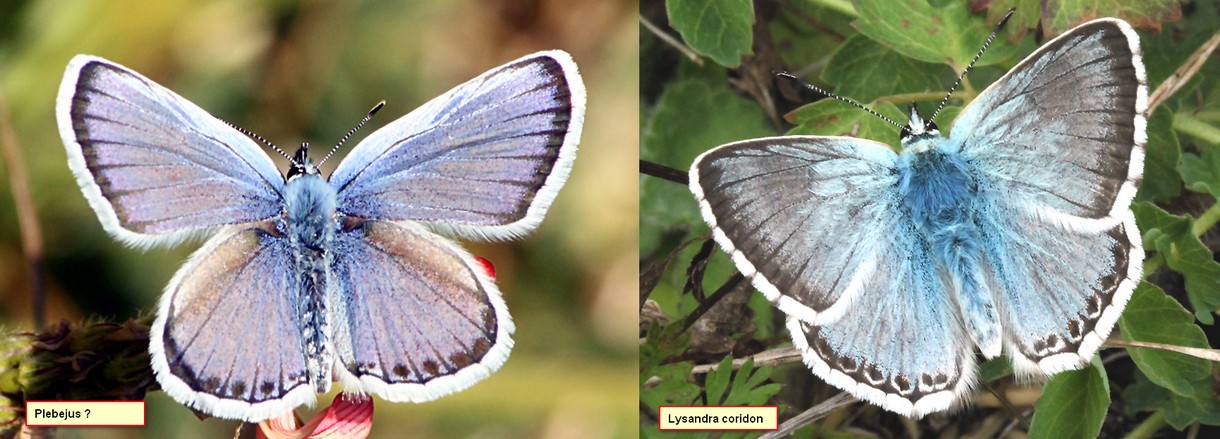 Les photos sont prises le 1er juin 2014 à Sournia(PO). J'ai mis pour comparaison une photo de dessus avec un L. coridon sûr