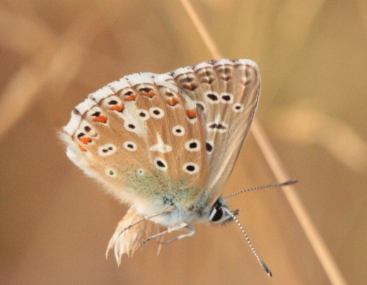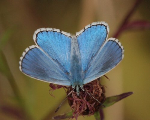Voila ce que je pense etre mon premier Polyommatus bellargus La derniere fois, les taches noires sur la frange blanche n'etaient pas suffisantes J'espere qu'elles le seront cette fois Le papillon etait tellement plus bleu que les autres que je voyais d'habitude que j'espere bien avoir raison cette fois